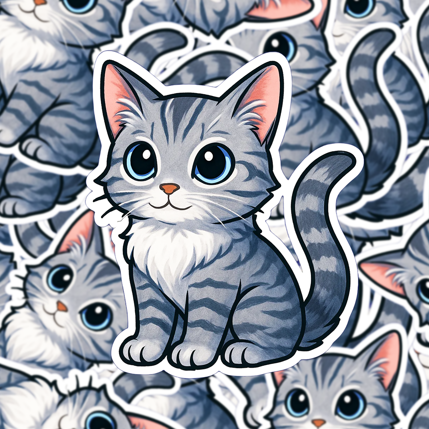 This Gray Tabby Cat Sticker brings sweet feline charm to your day! Featuring a wide-eyed, chibi-style gray tabby with fluffy stripes and a white chest, this handmade vinyl sticker is a must-have for cat lovers, journaling fans, and sticker collectors.