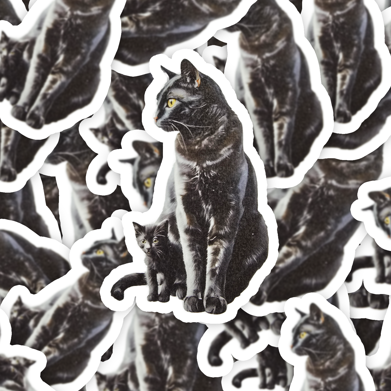 Black Cat Sticker, Mama & Kitten Art, Witchy Cat Vinyl Decal, Cute Halloween or Bookish Gift | Cute Dog Vinyl Sticker Gift