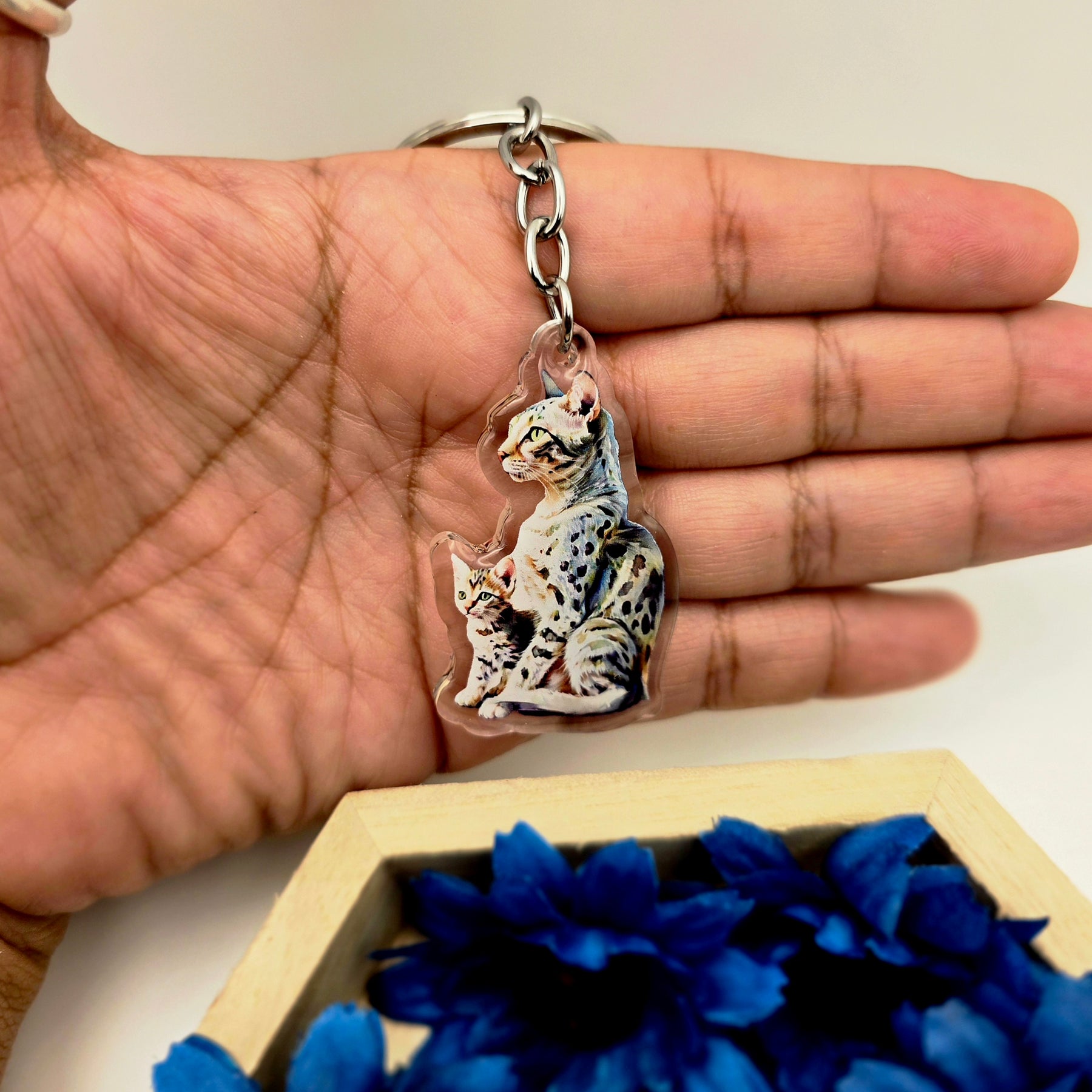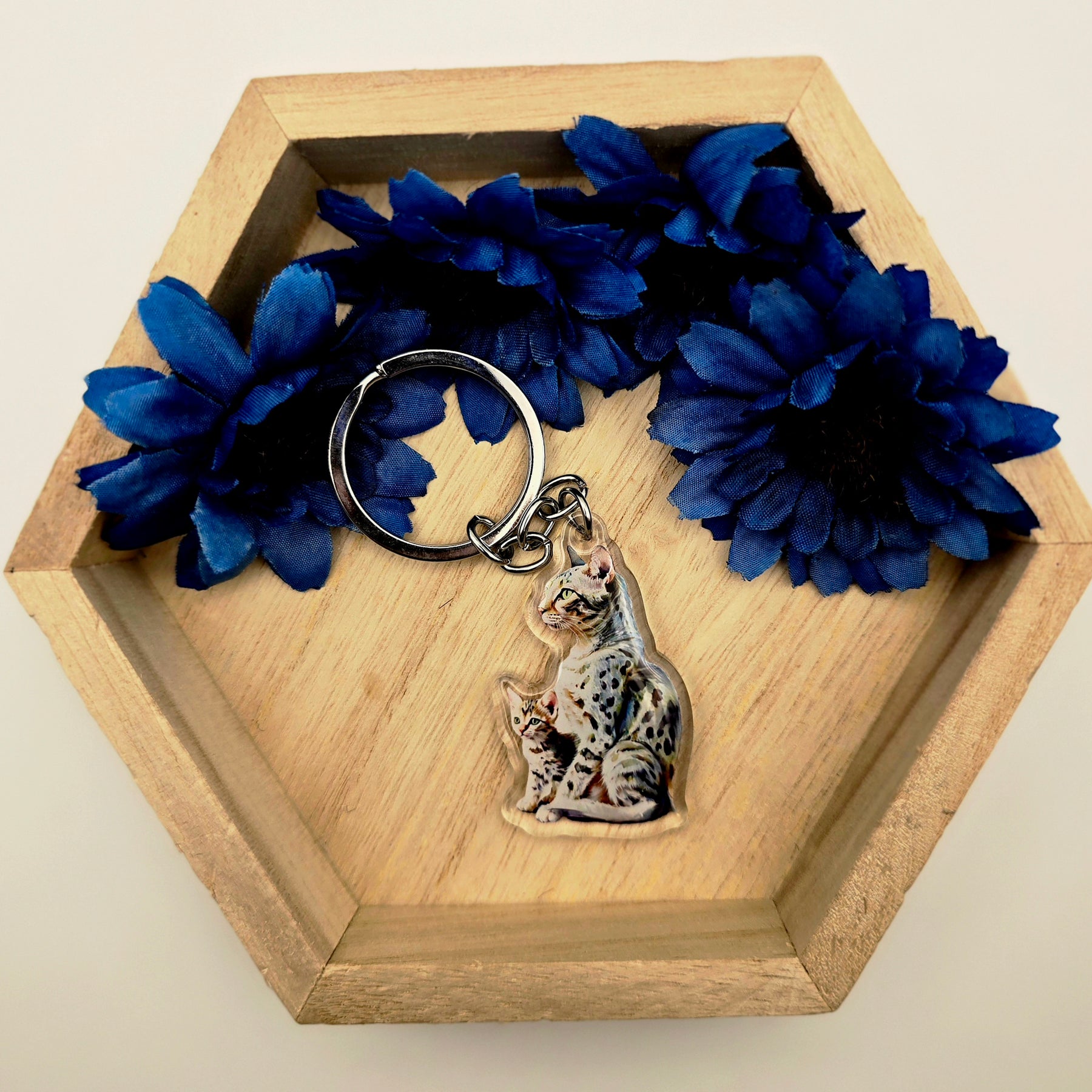 Egyptian Mau Cat and Kitten Keychain, Spotted Cat Acrylic Charm, Cat Lover Gift, Pet Mom Key Ring - Designs by Mysh