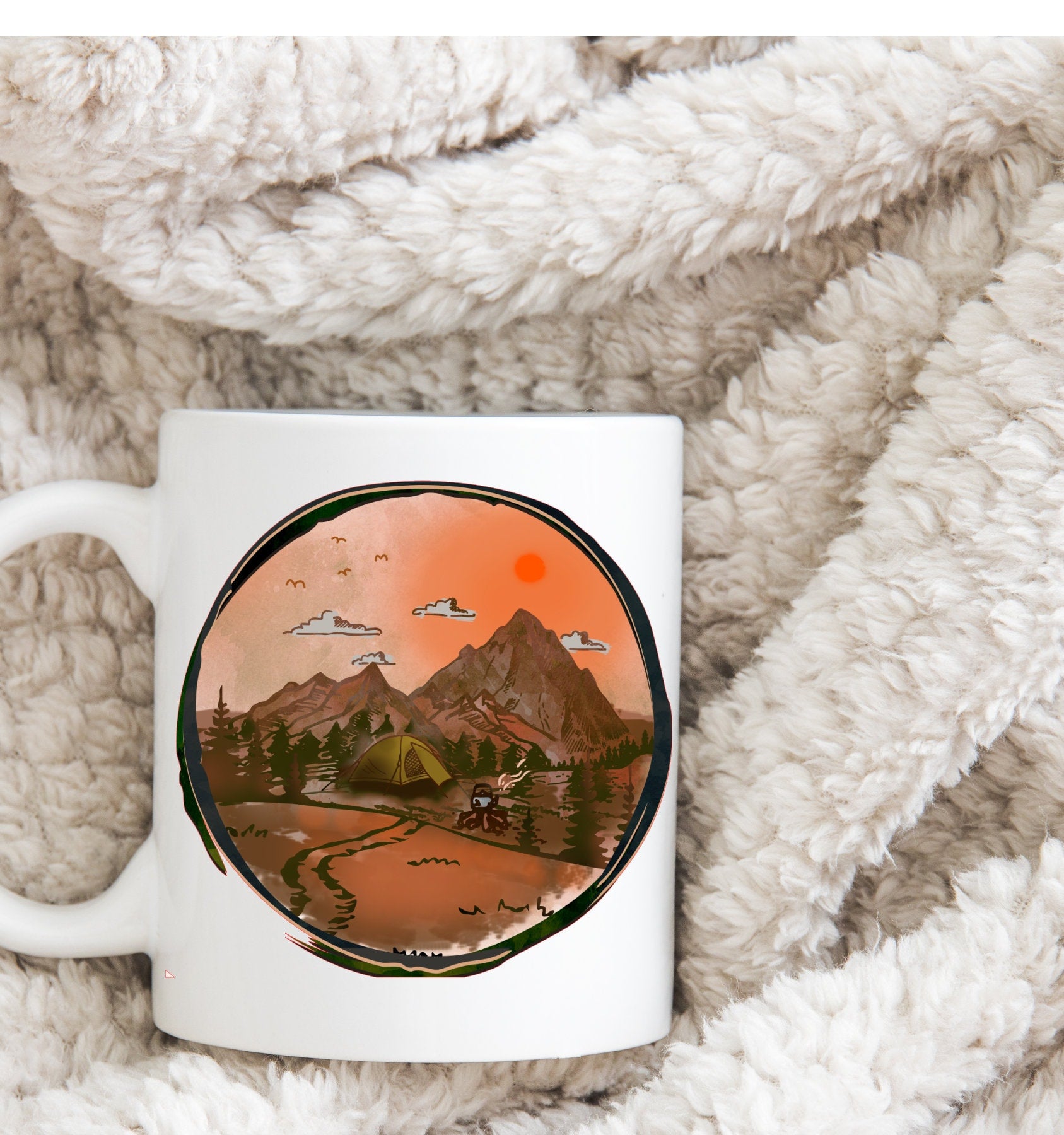Lively Design: Charming camping motifs, add a touch of outdoor adventure to your mug collection.