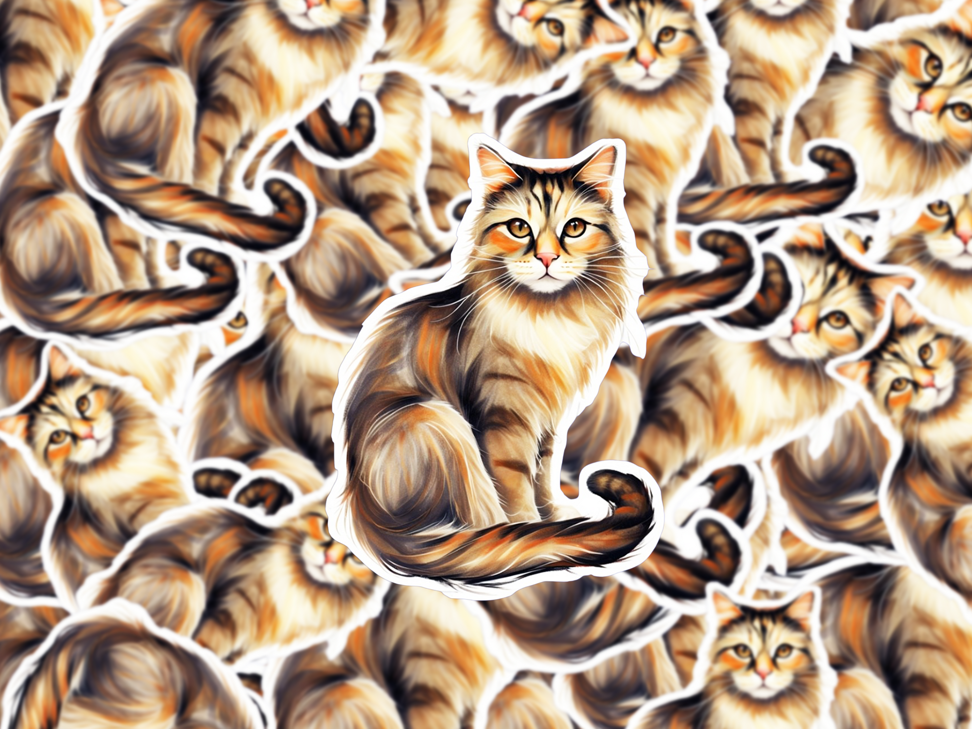 This Torbie Cat Sticker showcases a beautifully illustrated torbie (tortoiseshell-tabby) cat with striking coat patterns and vivid colors. Made from durable, water-resistant vinyl, it's ideal for personalizing laptops, water bottles, planners, phone cases, and more.