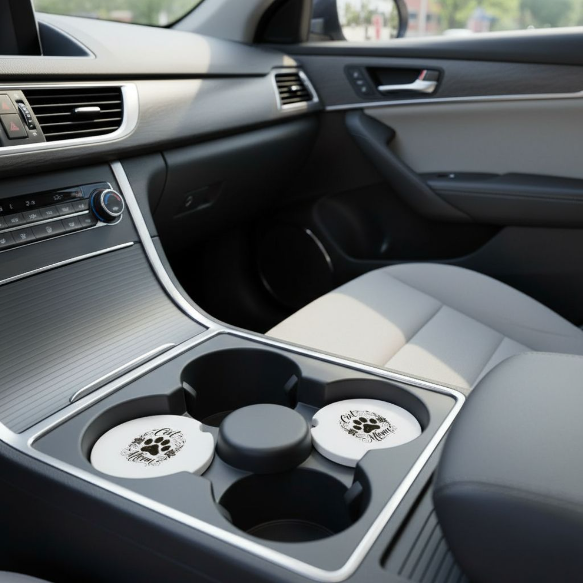 Cat Mom Ceramic Car Coaster Set – 2.56" Black Paw Print Design for Pet Lovers