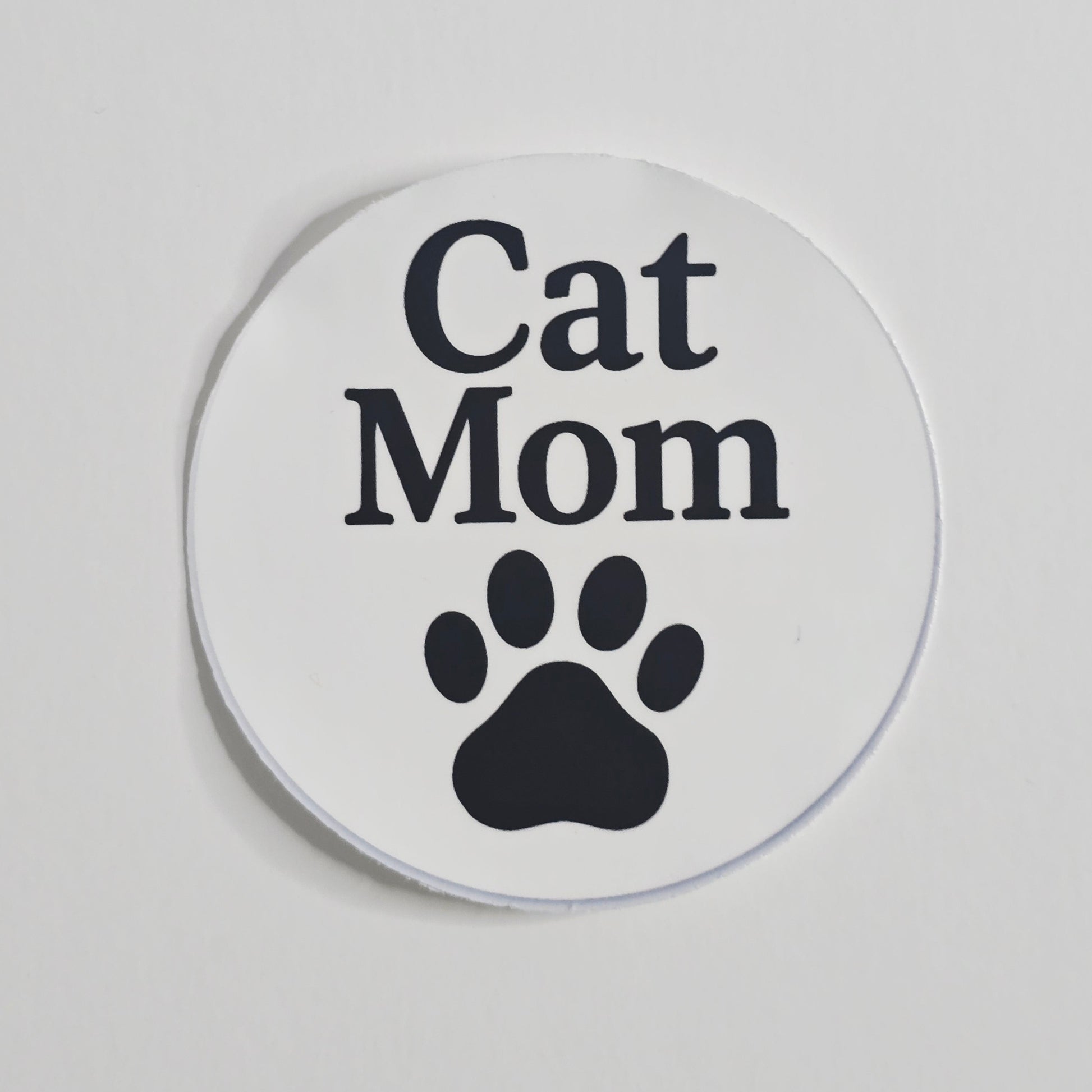 Cat Mom Sticker – Black Paw Print Circle Vinyl Sticker (3")