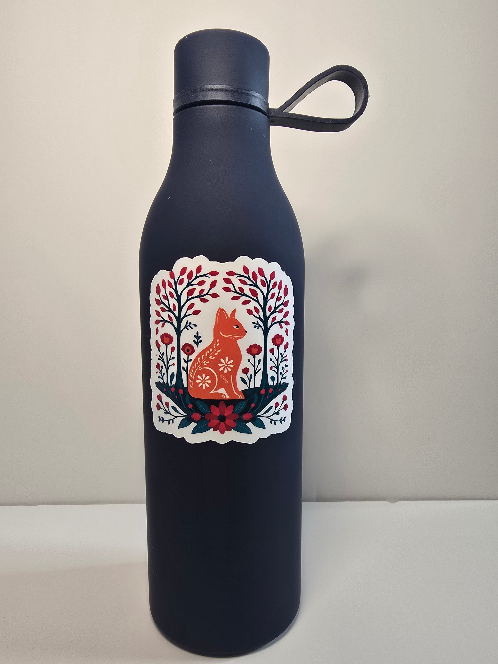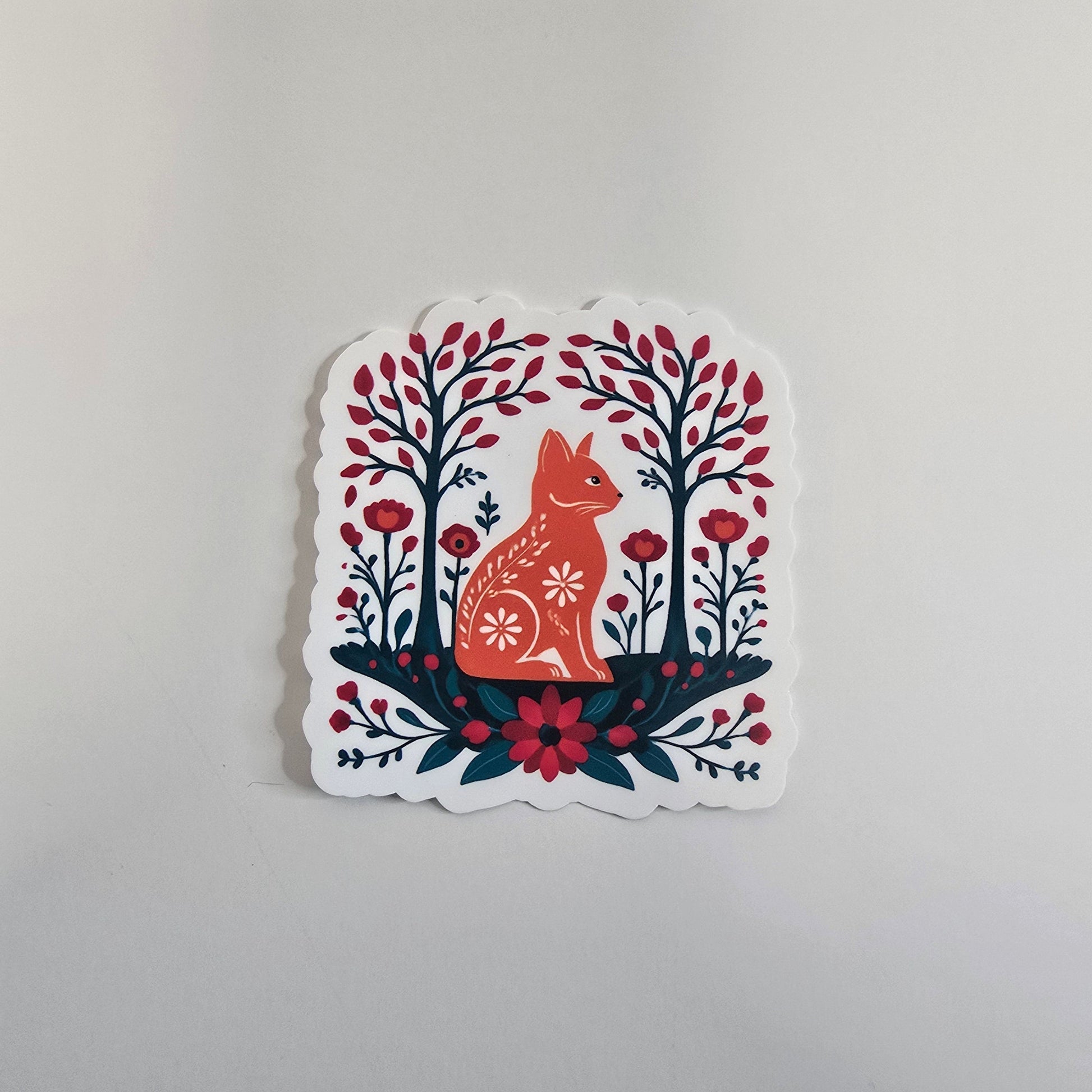 Add a charming touch of nature to your collection with our Folk Art Fox Sticker. Featuring a whimsical red cat surrounded by trees, leaves, and florals, this 3-inch die-cut sticker draws inspiration from Scandinavian and folk art motifs. It’s perfect for decorating laptops, water bottles, journals, planners, or nature-themed gifts.