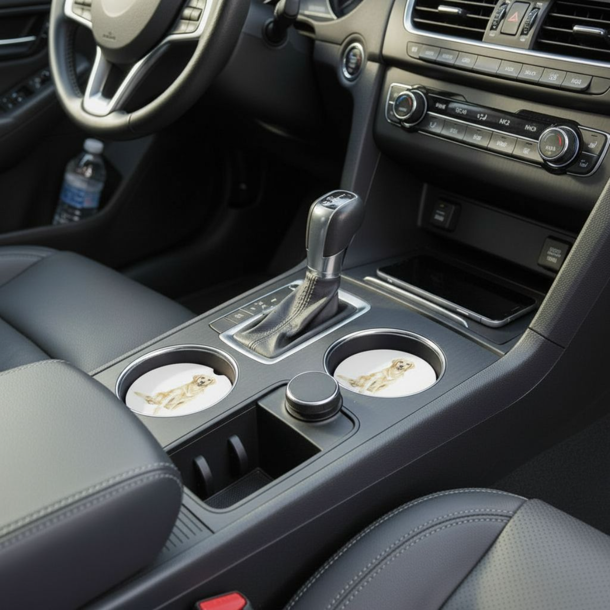 Light Golden Retriever Car Coaster Set – Ceramic Absorbent Coasters for Dog Lovers (Set of 2)