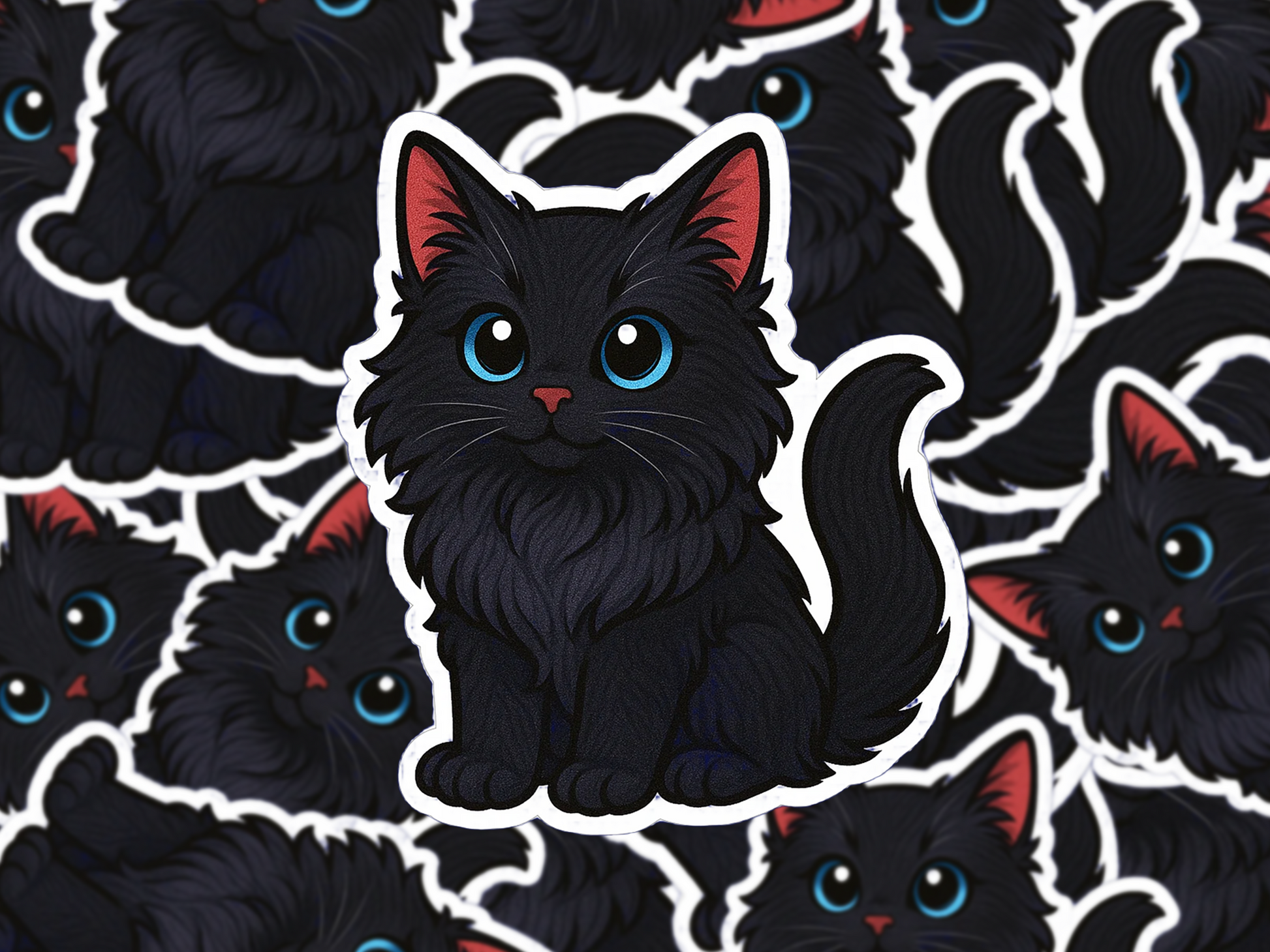 - Chibi cartoon-style Black Maine Coon design